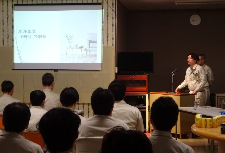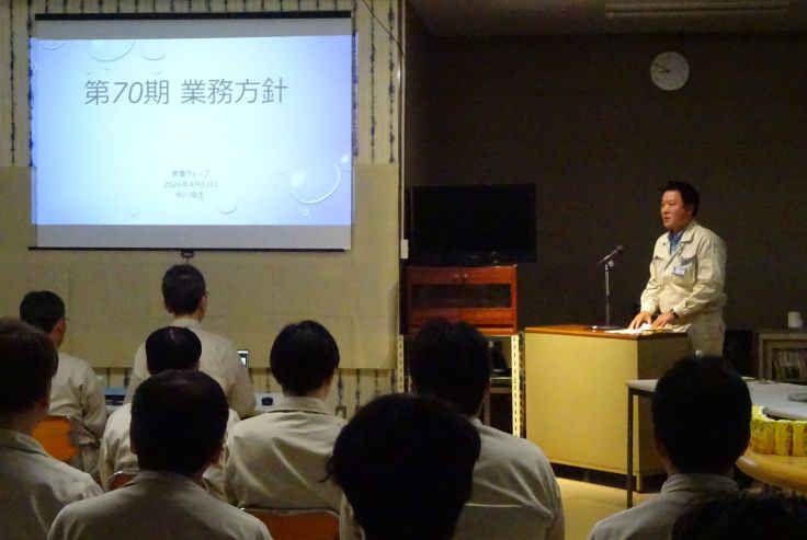 1. 社長の川口より、新年度開始にあたってのメッセージおよび今期経営方針の説明がありました。